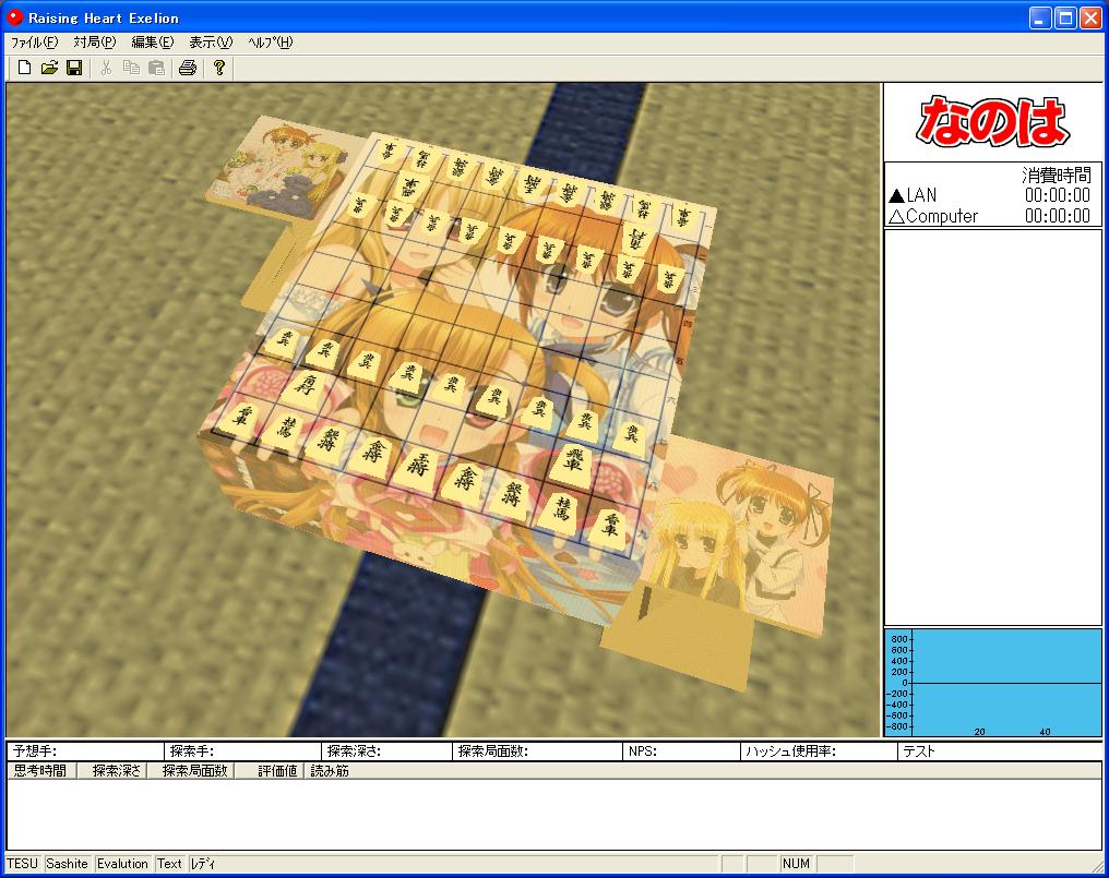 万が一、電王線出場することになった場合は商用に利用されることを前提にソフトを提供しなければならないので、もともとのなのはの「痛将棋盤」は完全にアウトとして、駒や盤面の画像が将棋アプリ用クリエイティブコモンズ画像のデータを加工して使っているため「非商用の将棋プログラム向け」という条件に抵触する可能性がある。盤面は適当にググって特に問題ない画像を見つけた(盤面は薄い色、駒台は濃い色を選択)。 駒の方も商用利用可の素材を無料素材倶楽部というところで見つけたが、成桂と成香の区別がつかないので使うかどうか迷った。筆ペンを買ってきて自分で書いてみたが、 ごらんの有様だよっ! とても使えるものではないと判断し、成桂と成香の区別がつかないけど最初に見つけた無料素材倶楽部の将棋駒と将棋盤のデータを加工して使うことにした。ということで、以下の画像のようになった。 ちなみに、セリフはあみたろの声素材工房からいただいた。 結婚資金や電気代ほどではないが、今回はあわよくば賞金をゲットしてサポートが切れる WindowsXP を5台分置き換えるんだ、という狙いがあった。