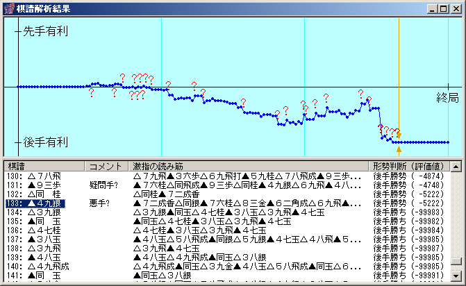 棋譜はこちら。 先手は39手まで定跡データで指しています。 激指先生の解析によると定跡から外れてからはいいところなくずるずると土俵を割った感じです…。 これで1勝1敗。 目標とするプログラムがどんどん増えてくなぁ~。 PR